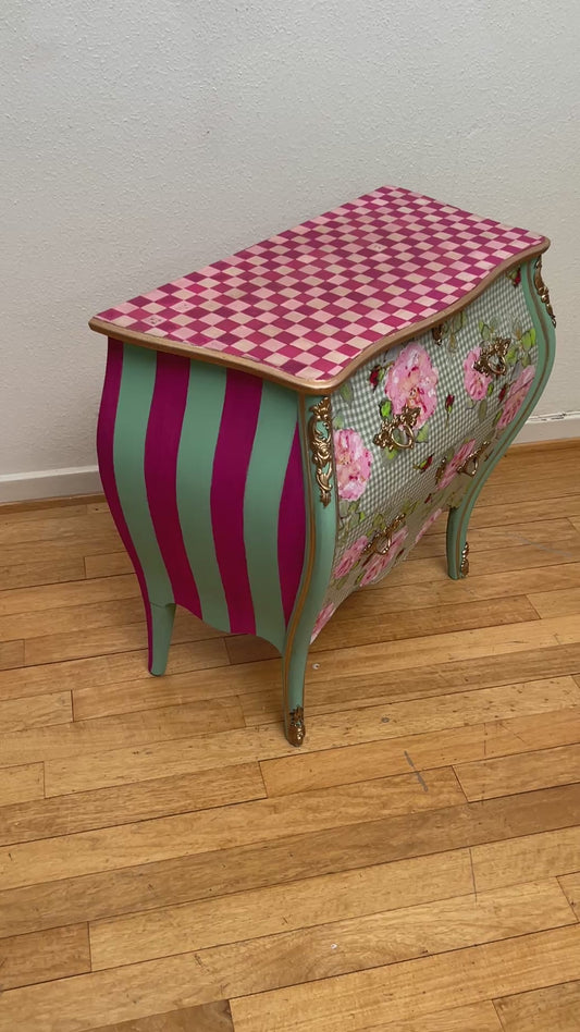 Vintage Kommode | Rokokko "Magekommoden" | Scandinavian Vintage | Rose Fabric | Brass Details | Mint Green