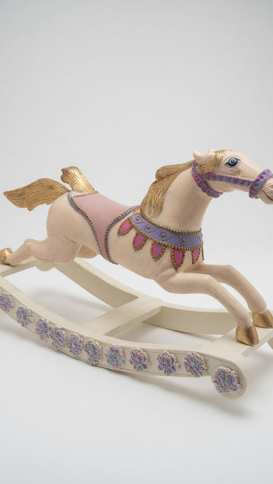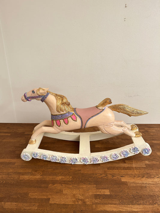 Hand-Painted Antique Rocking Horse – Pastel Nursery Decor, Heirloom Toy