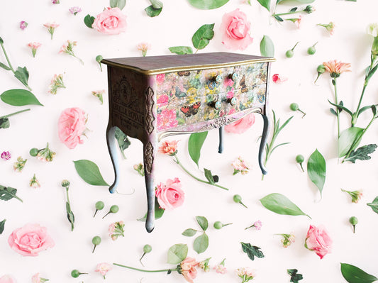 Vintage Kommode | Re-Designed | Oak Furniture | Mint Green Paint | Bird & Floral Décor | Handmade | Hand Painted